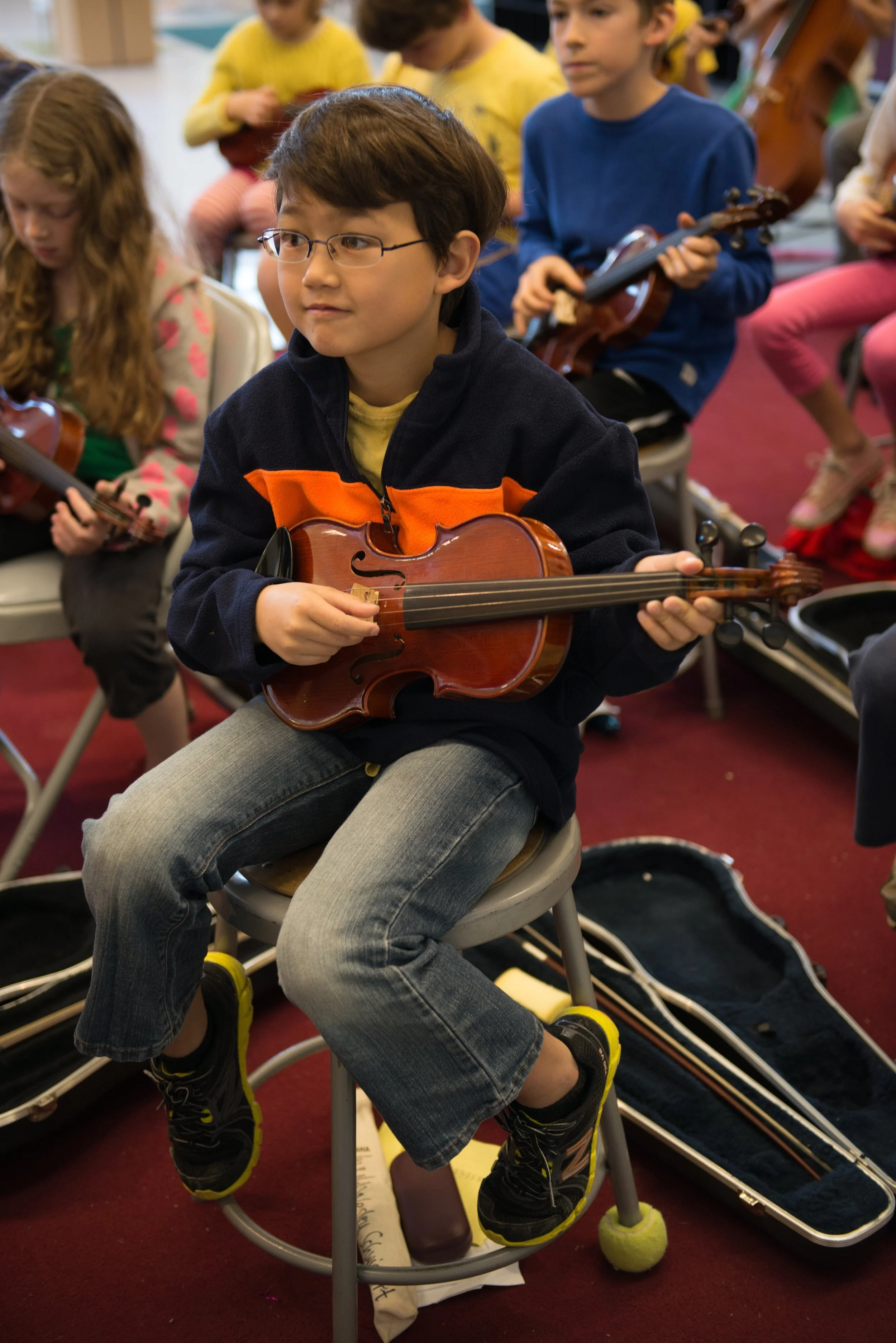 Instrumental and choral music are cornerstones of our comprehensive program. Students are introduced to instruments in grades K-2 through the use of xylophones, drums, mallets and other percussion instruments. Hands-on exposure to instruments continues in 4th grade with an introduction to orchestral strings (violin and cello) and wind instruments (recorder). During fifth grade, students choose a year-long study of either vocal music, or of one instrument (flute, clarinet, trumpet, trombone, violin, or cello).